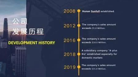 হুনান সানফুল বায়ো-টেক কোং, লিমিটেডআর অ্যান্ড ডি, উত্পাদন, এবং প্রাকৃতিক উদ্ভিদ নিষ্কাশন বিক্রয়গুলিতে বিশেষজ্ঞ 20 বছরেরও বেশি পেশাদার অভিজ্ঞতা সহ একটি উচ্চ-প্রযুক্তি উদ্যোগ। সংস্থাটি আইএসও 9001, আইএসও 22000/এইচএসিসিপি, কোশার এবং হালাল শংসাপত্র ধারণ করেছে এবং জাতীয় গ্রেড II পুরষ্কার এবং প্রাদেশিক প্রথম পুরষ্কার পুরষ্কার পেয়েছে। তাদের সুপরিচিত ট্রেডমার্কগুলির মধ্যে রয়েছে সানফুলবিও, সানপিকা ™ এবং টিভিটাল ™ ™
